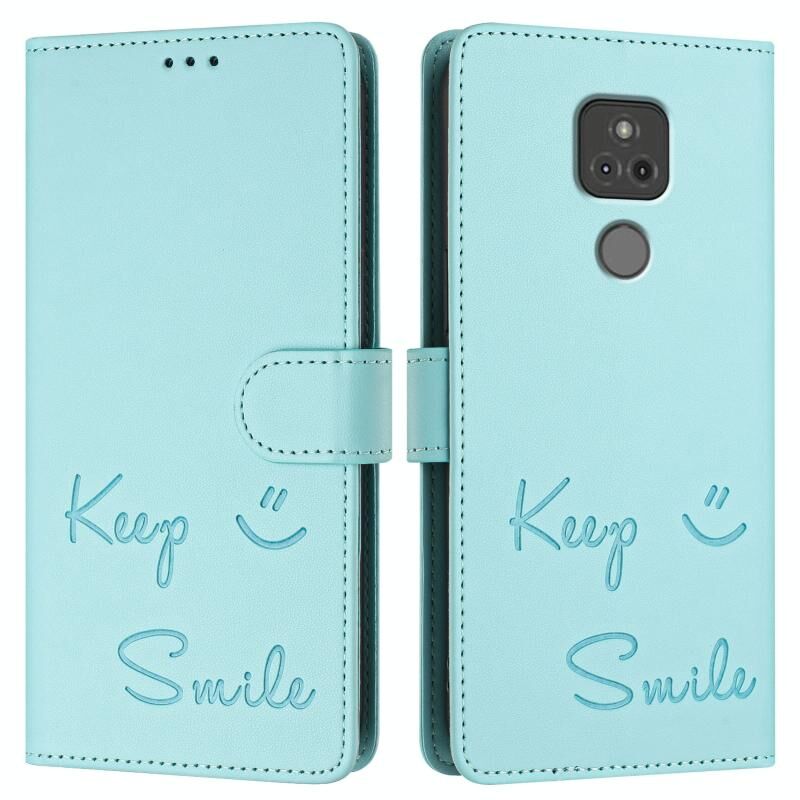 Θήκη τηλεφώνου δερμάτινη με ανάγλυφο χαμόγελο και RFID για Motorola Moto G Play 2021 (Μέντας Πράσινο)