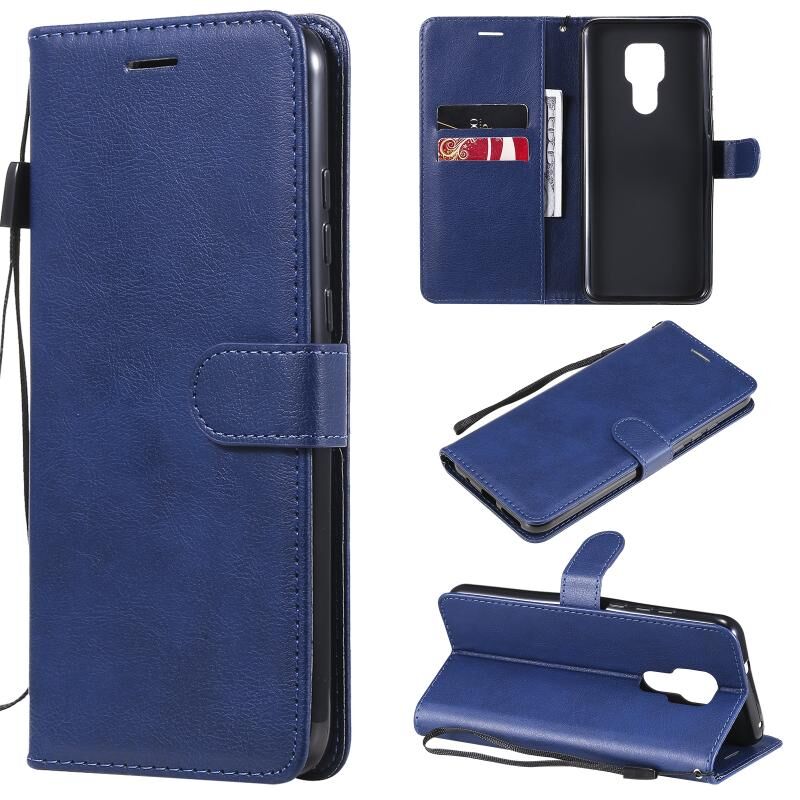 Για Motorola Moto G Play 2021 Αμιγές χρώμα οριζόντια Flip προστατευτική δερμάτινη θήκη με θήκη & υποδοχές για κάρτες & πορτοφόλι & πλαίσιο φωτογραφιών & κορδόνι (μπλε)