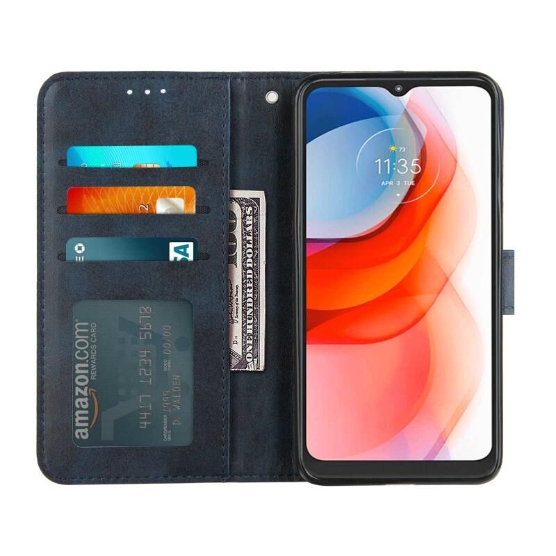Για Motorola Moto G Play 2021 ραφή μοσχάρι υφή πόρπη δερμάτινη θήκη τηλεφώνου (μπλε)