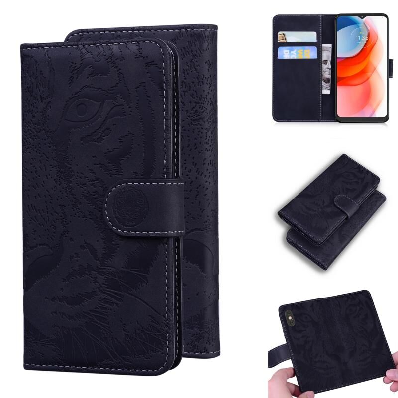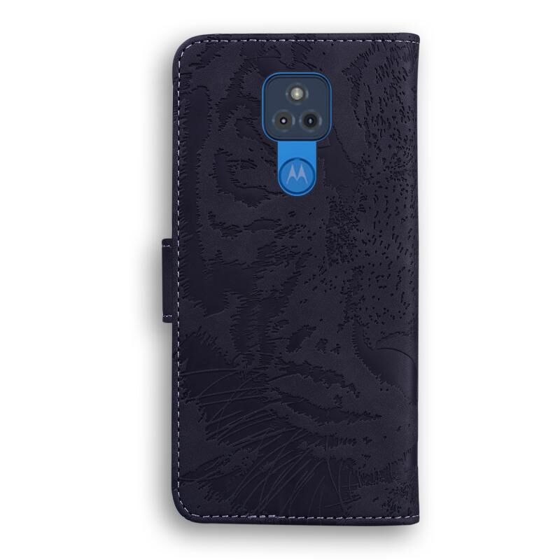 Θήκη δέρματος οριζόντιας αναδίπλωσης με ανάγλυφο μοτίβο τίγρης για Motorola Moto G Play (2021) με βάση & υποδοχές καρτών & πορτοφόλι (Μαύρο)