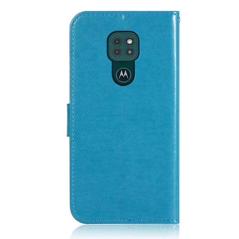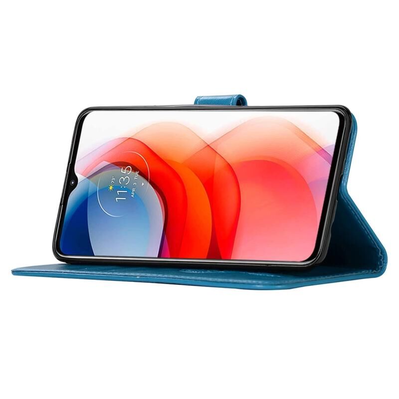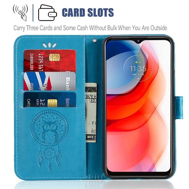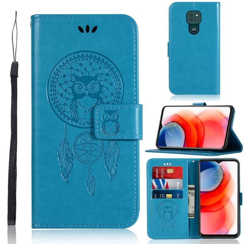 Θήκη οριζόντιας αναδίπλωσης από δέρμα για Motorola Moto G Play (2021) με σχέδιο κουδουνίσματος ανέμου και ανάγλυφο κουκουβάγια, με βάση & υποδοχές καρτών & πορτοφόλι (Μπλε)