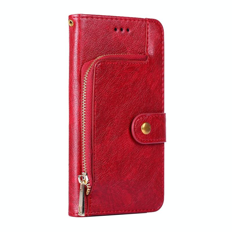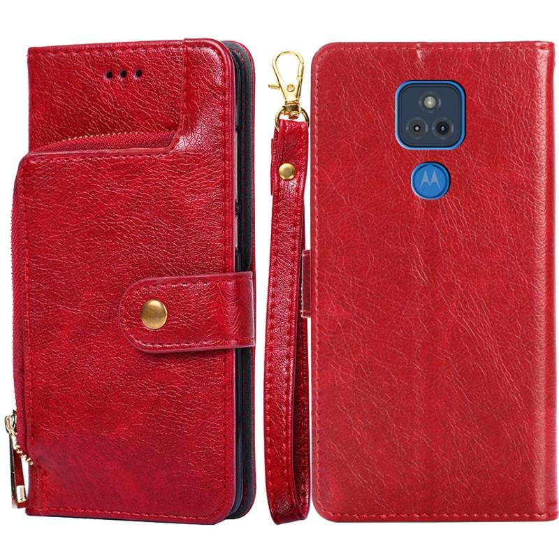 Θήκη δέρματος οριζόντιας αναδίπλωσης με φερμουάρ PU + TPU για Motorola Moto G Play (2021) με βάση & υποδοχή κάρτας & πορτοφόλι & κορδόνι (Κόκκινο)