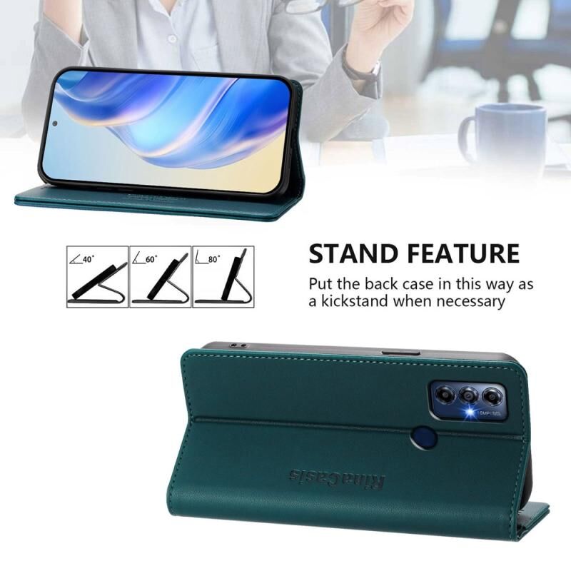 Θήκη τηλεφώνου δερμάτινη με μαγνητική απορρόφηση και διπλή πτυχή για Motorola Moto G Play 2022 RC01 (Μέντας Πράσινο)