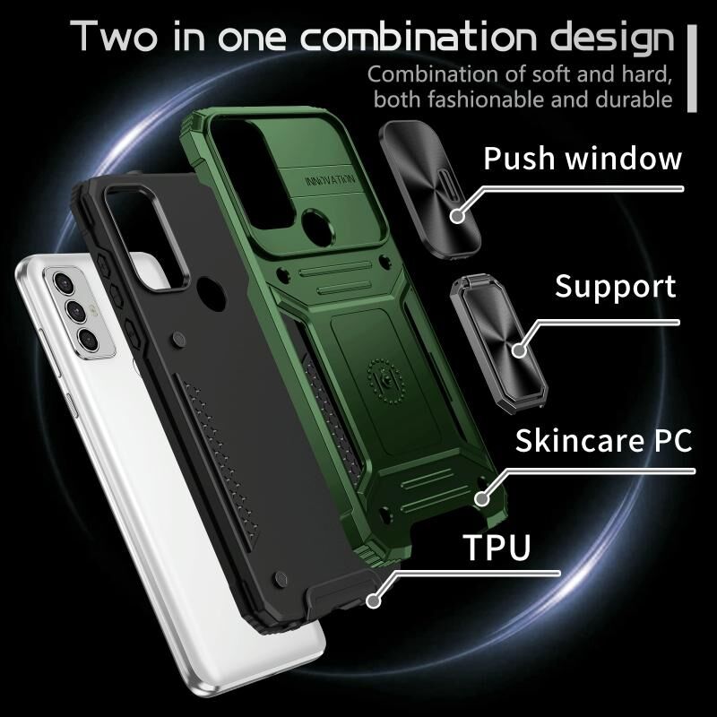 Για Motorola Moto G Play 2023 Camshield ρομπότ TPU υβριδική θήκη τηλεφώνου PC (πράσινο)
