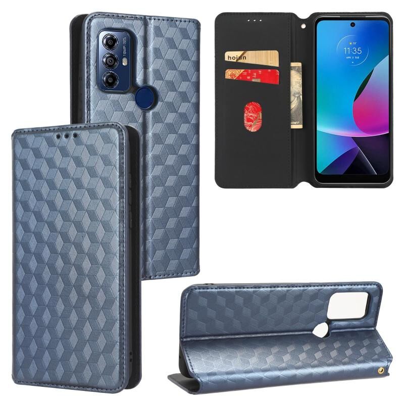 Θήκη τηλεφώνου από δέρμα με υφή Cubic Grid και πτυσσόμενο σχεδιασμό για Motorola Moto G Play 2023 (Μαύρο)
