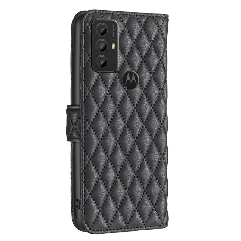 Θήκη για Motorola Moto G Play 2023, Δερμάτινη θήκη πορτοφολιού με σχέδιο διαμαντόπλεγμα (Μαύρο)