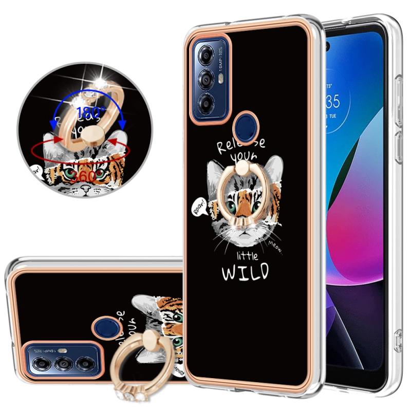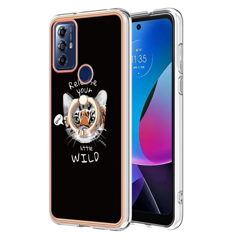 For Motorola Moto G Play 2023 Electroplating Dual-side IMD Phone Case with Ring Holder(Natural Growth)