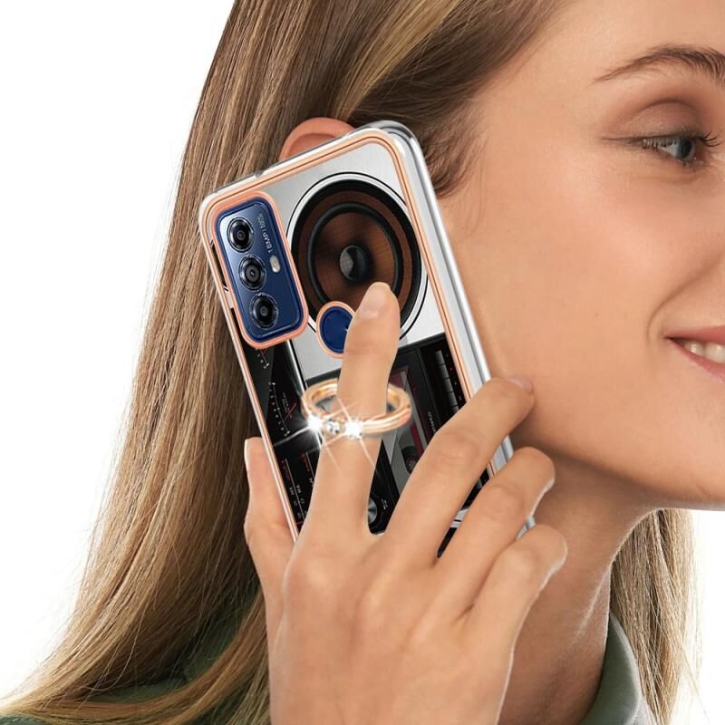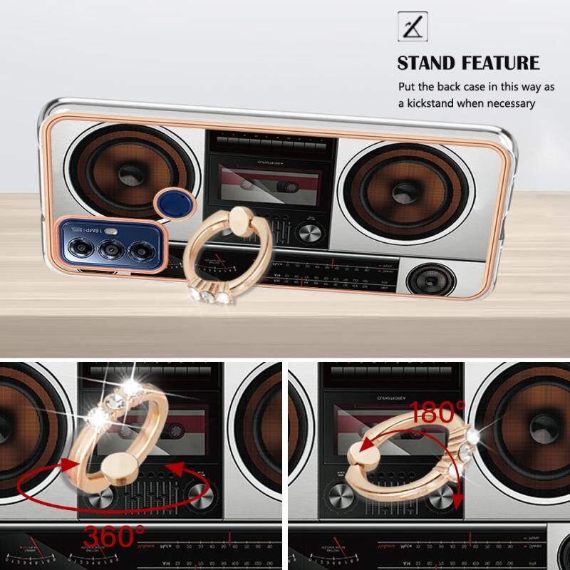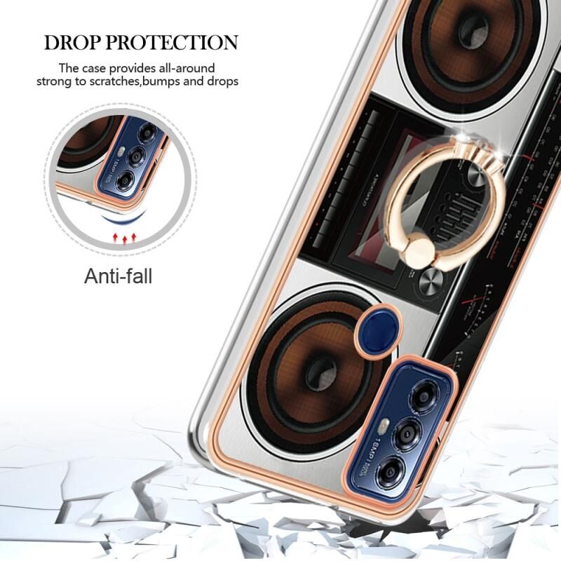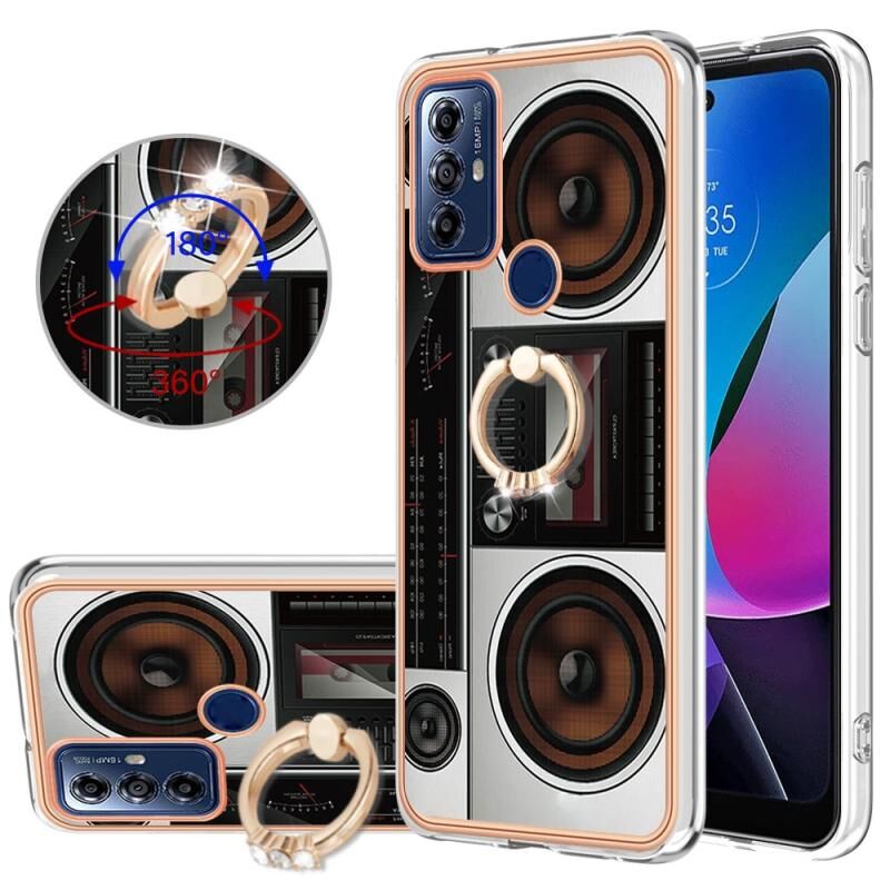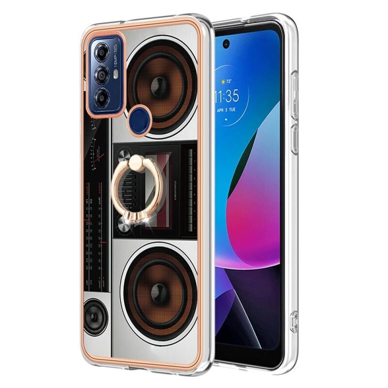 Θήκη τηλεφώνου με δακτύλιο στήριξης και σχέδιο ρετρό ραδιοφώνου για Motorola Moto G Play 2023, με ηλεκτρολυτική επιμετάλλωση και IMD διπλής όψης.