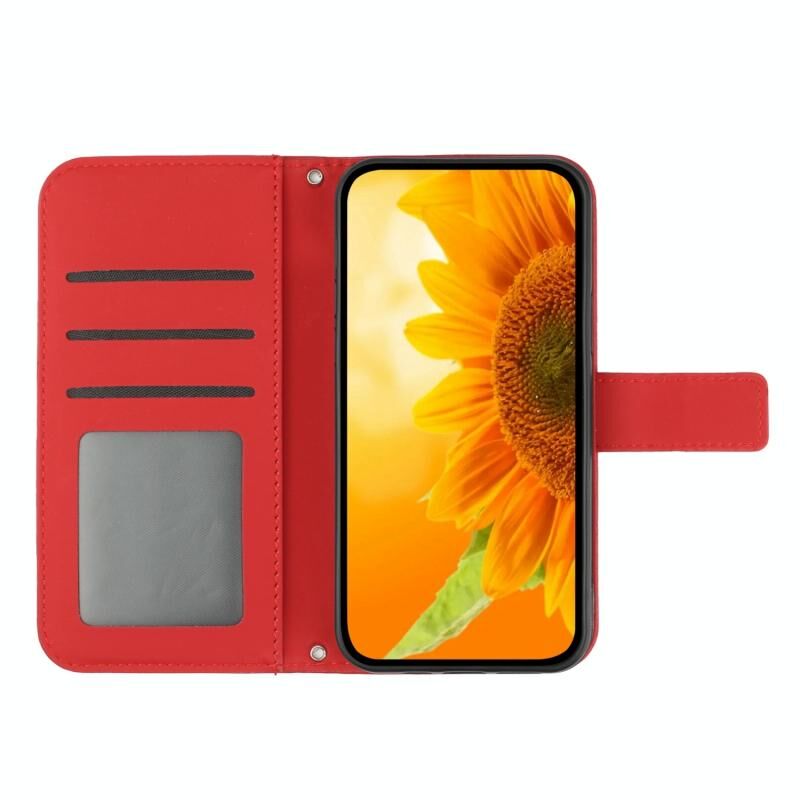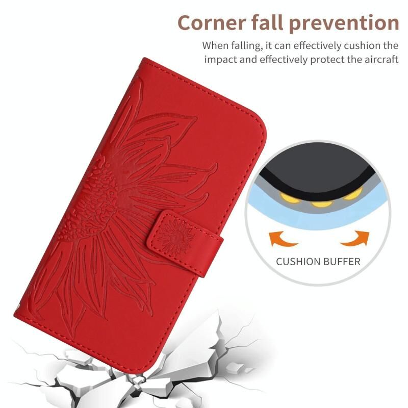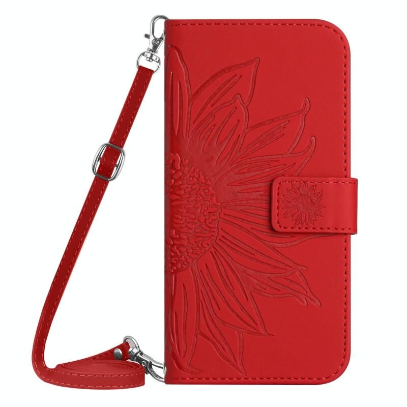Για το Motorola Moto G Play 2023 HT04 Skin Feel Sun Flower ανάγλυφο ανάγλυφο Flip δερμάτινη θήκη τηλεφώνου με κορδόνι (Κόκκινο)