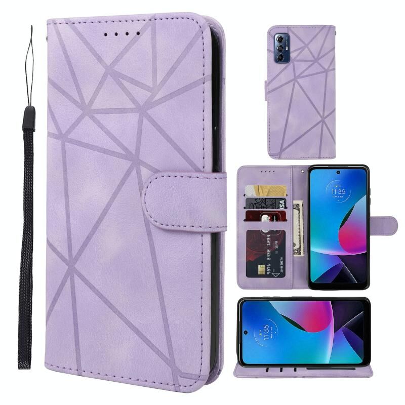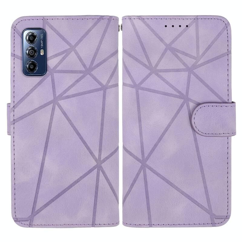 Για Motorola Moto G Play 2023 Skin Feel Γεωμετρικές γραμμές δερμάτινη θήκη τηλεφώνου (Μωβ)