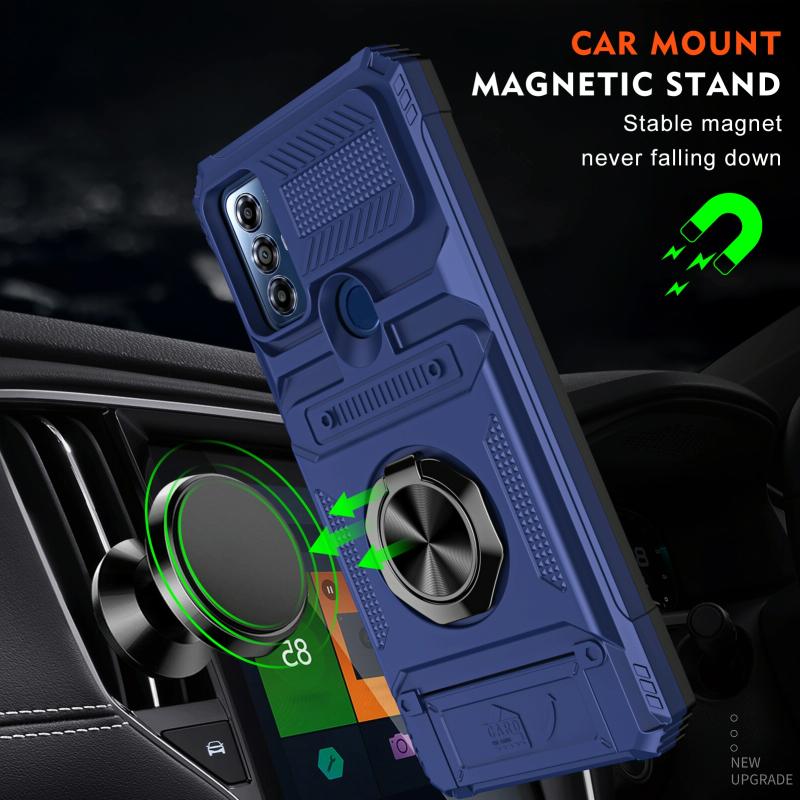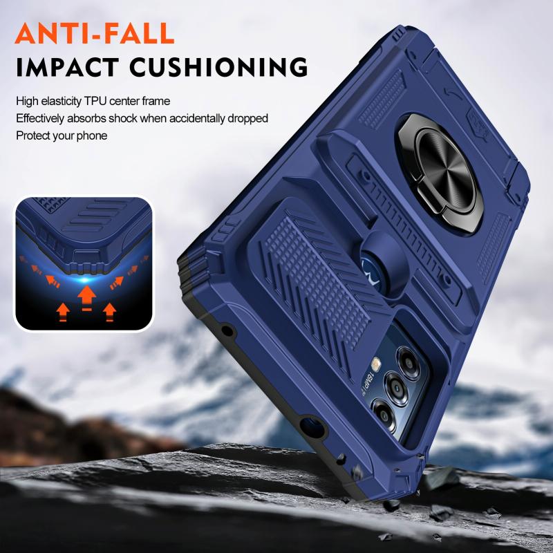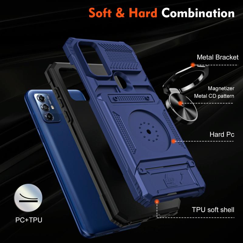 For Motorola Moto G Play 2023 TPU+PC Shockproof Card Slot Phone Case with Metal Ring Holder(Blue)