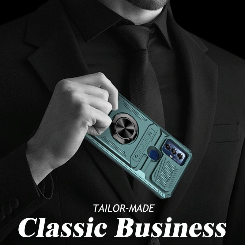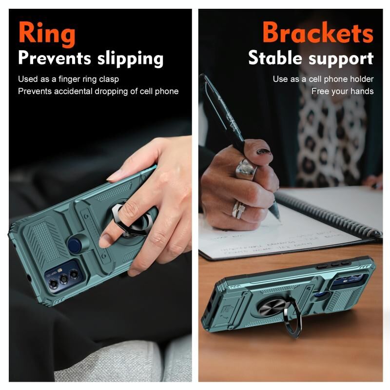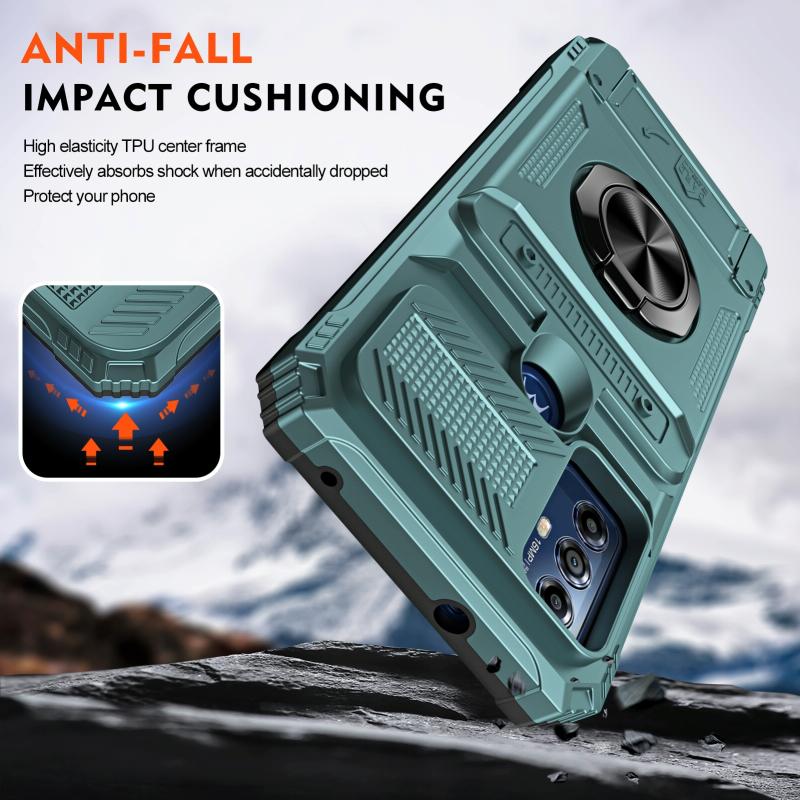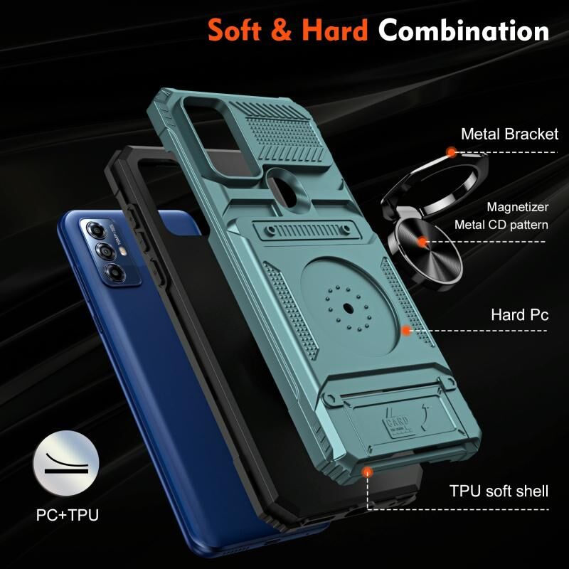 For Motorola Moto G Play 2023 TPU+PC Shockproof Card Slot Phone Case with Metal Ring Holder(Green)
