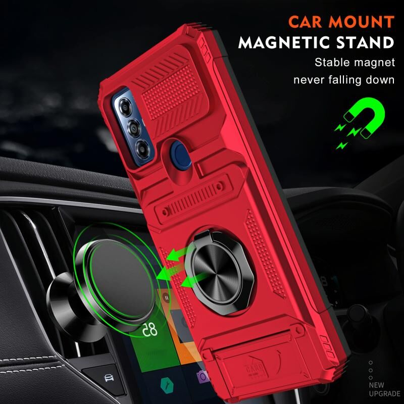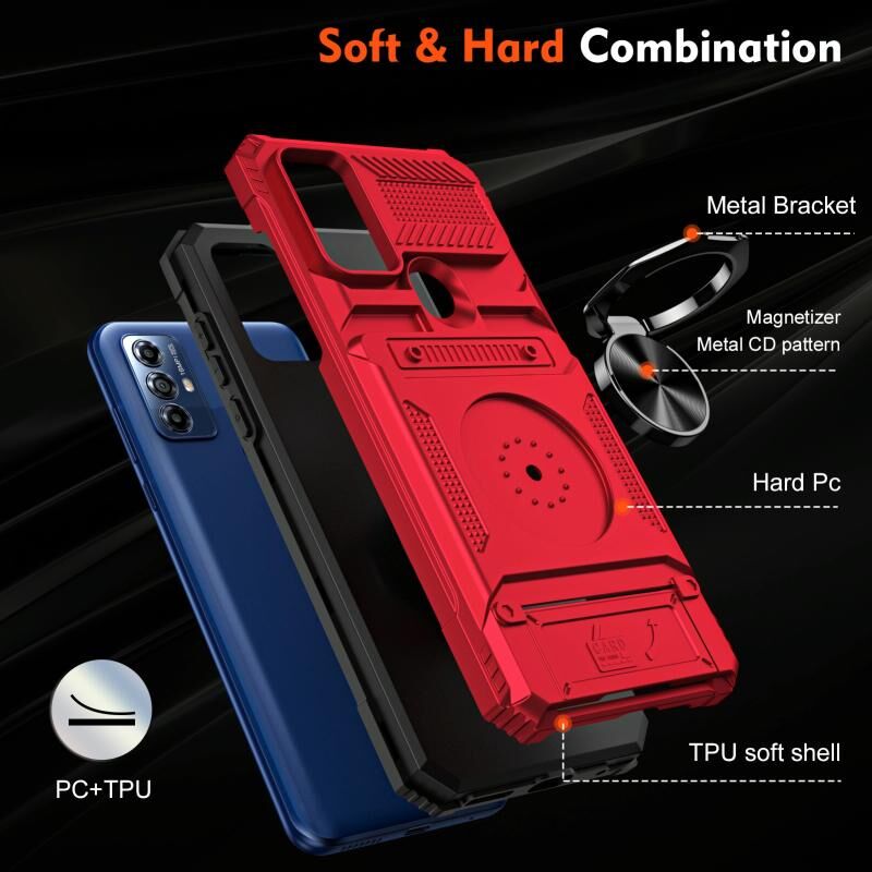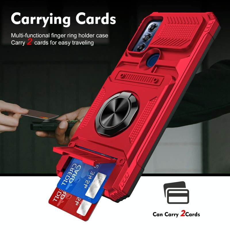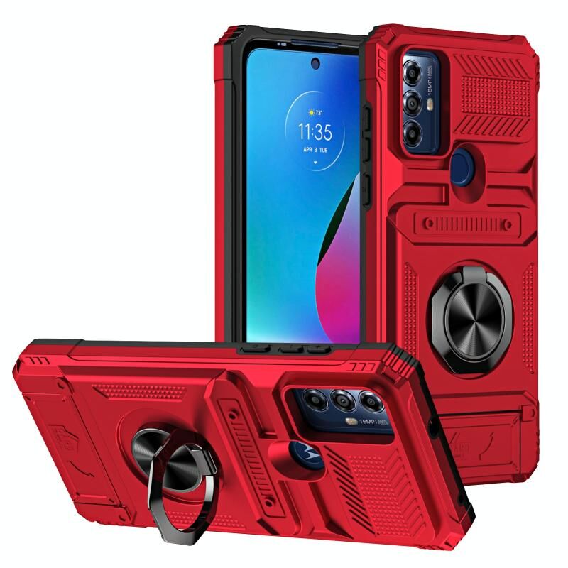 For Motorola Moto G Play 2023 TPU+PC Shockproof Card Slot Phone Case with Metal Ring Holder(Red)