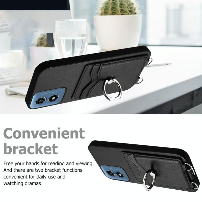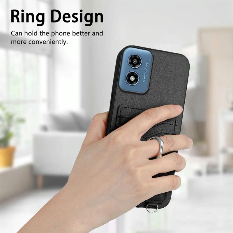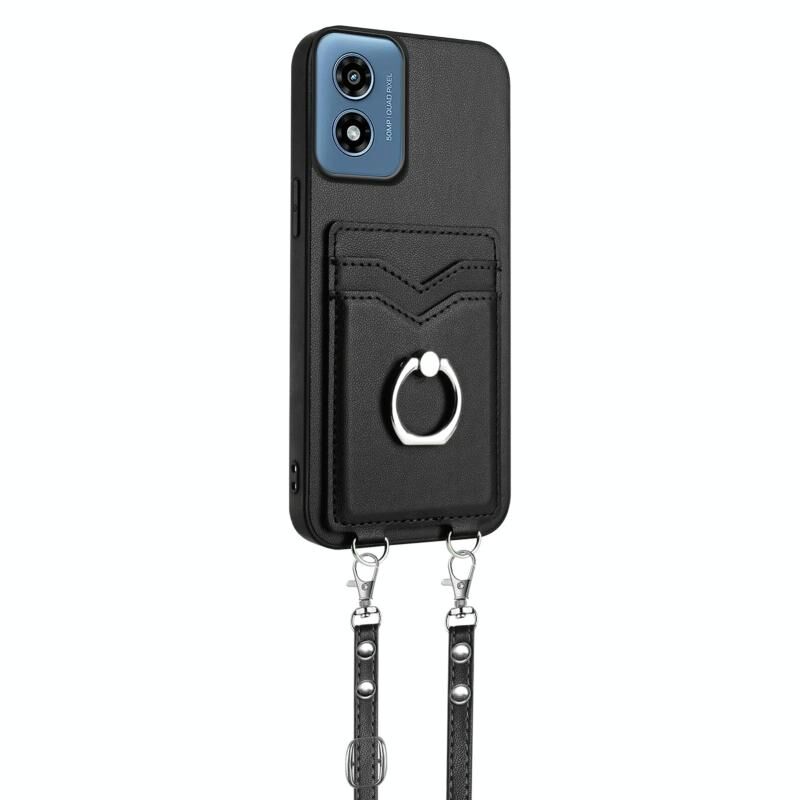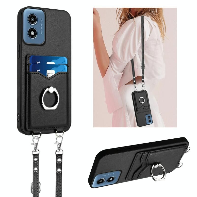Για Motorola Moto G Play 2024 4G R20 Crossbody Rope Ring Card Holder τηλέφωνο υπόθεση (Μαύρο)