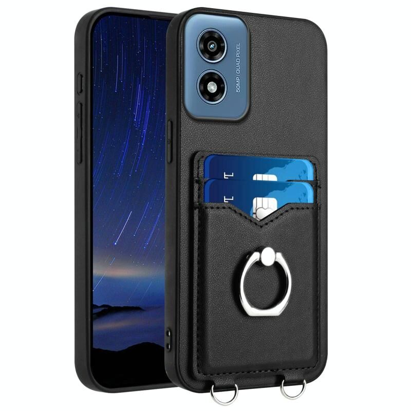 Για Motorola Moto G Play 2024 4G R20 Θήκη για θήκη τηλεφώνου με θήκη κάρτας δαχτυλιδιού (μαύρο)