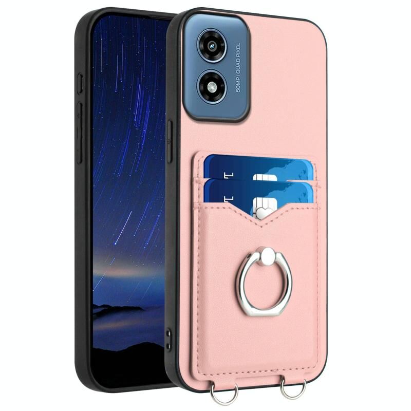 Για Motorola Moto G Play 2024 4G R20 Θήκη για θήκη τηλεφώνου με θήκη κάρτας δαχτυλιδιού (ρόζ)