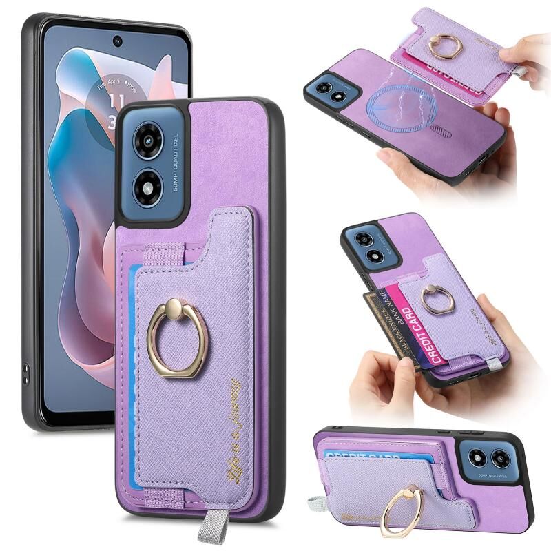 Για Motorola Moto G Play 2024 4G Θήκη Δέρμα με Λαβή & Κάρτες (Μωβ)