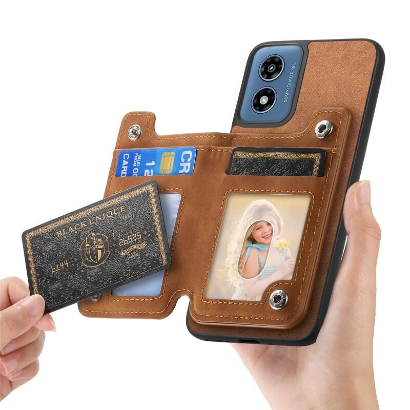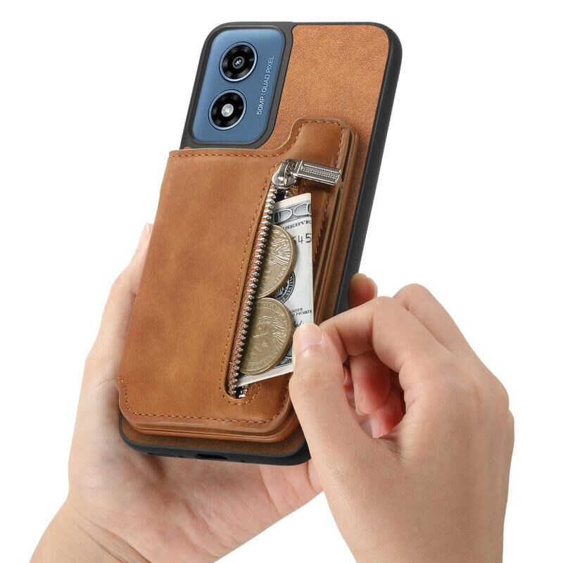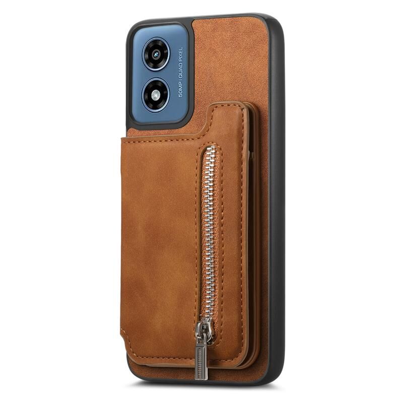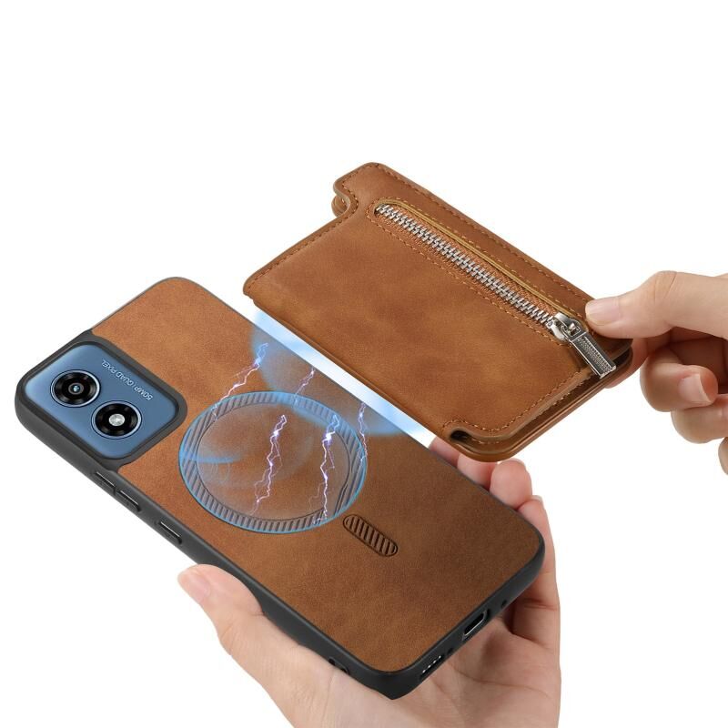 Για Motorola Moto G Play 2024 4G Ρετρό Θήκη Τηλεφώνου με Μαγνητική Στήριξη (MagSafe), Δερμάτινη Θήκη Πορτοφολιού με Φερμουάρ και Κάρτες (Καφέ)