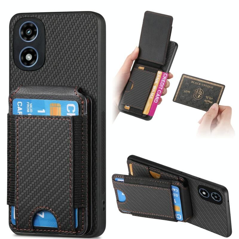 Θήκη τηλεφώνου με κάθετη αναδίπλωση, τύπου πορτοφολιού και βάση στήριξης για Motorola Moto G Play 2024 5G από ανθρακονήματα (Μπλε)