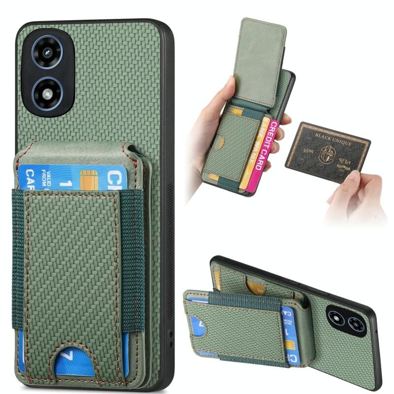 Θήκη τηλεφώνου με κάθετη αναδίπλωση, τύπου πορτοφολιού και βάση στήριξης για Motorola Moto G Play 2024 5G από ανθρακονήματα (πράσινο)