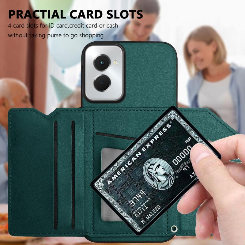 For Motorola Moto G Play 2024 5G Skin Feel Four Card Slots Phone Case with Wrist Strap(Green)