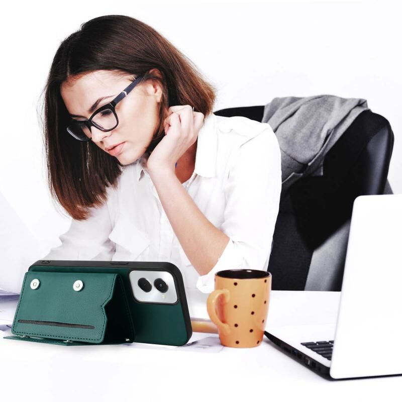 1. Πολυλειτουργικός Σχεδιασμός: Συνδυάζει λειτουργίες θήκης τηλεφώνου και πορτοφολιού για εύκολη μεταφορά.