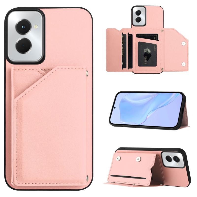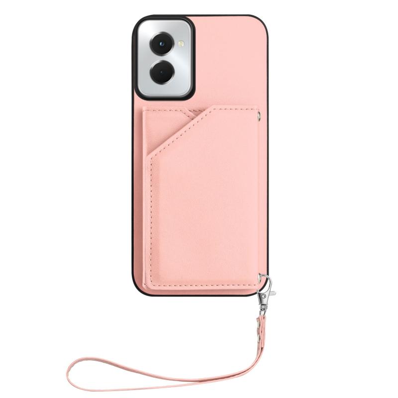 For Motorola Moto G Play 2024 5G Skin Feel Four Card Slots Phone Case with Wrist Strap(Pink)