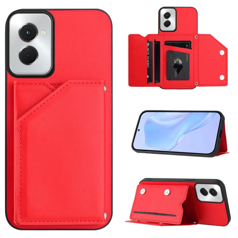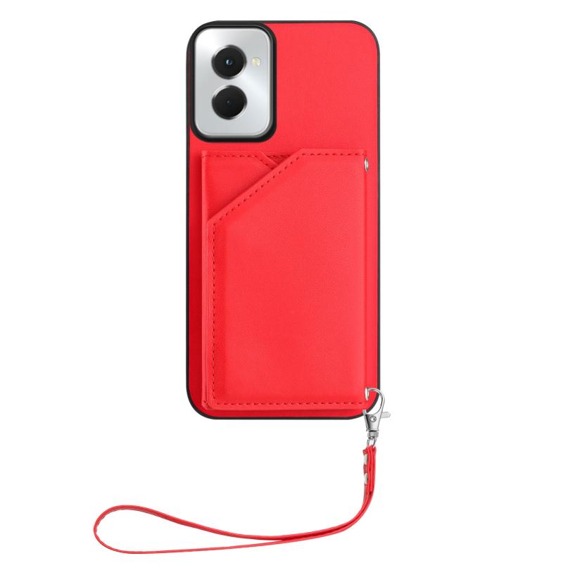 For Motorola Moto G Play 2024 5G Skin Feel Four Card Slots Phone Case with Wrist Strap(Red)