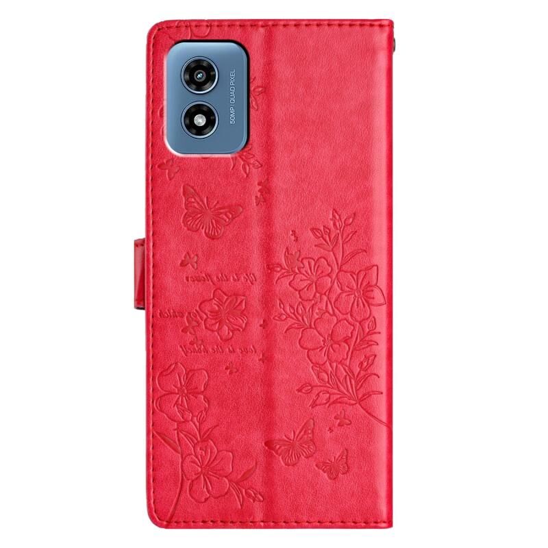 Θήκη τηλεφώνου από δέρμα με πεταλούδες και λουλούδια για Motorola Moto G Play 2024 (Χρυσό)