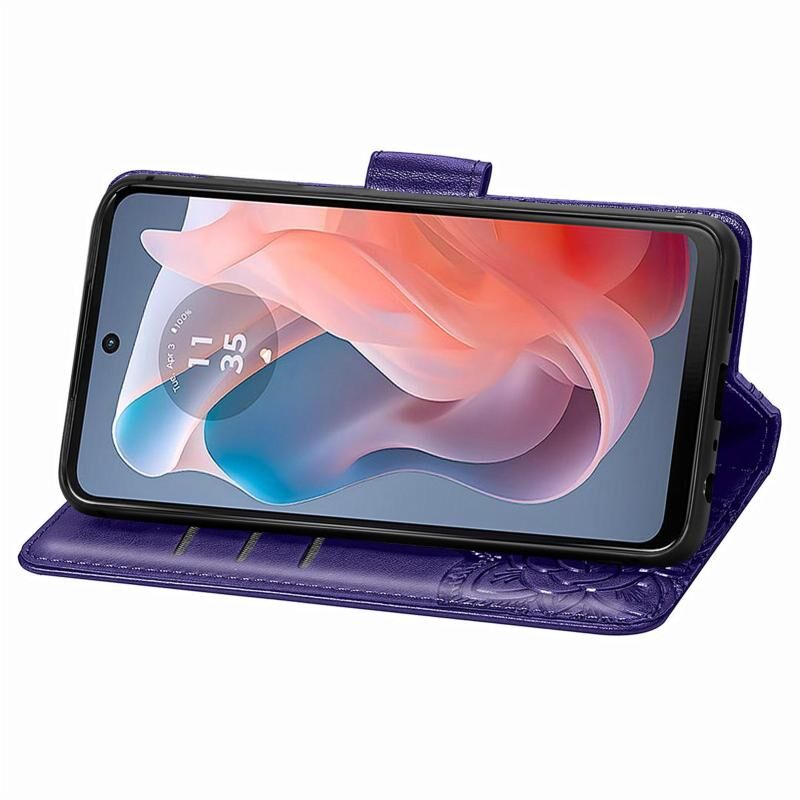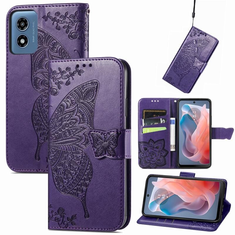 Θήκη κινητού τηλεφώνου δερμάτινη ανάγλυφη με σχέδιο πεταλούδας και λουλουδιών για Motorola Moto G Play 2024 (Μπλε)