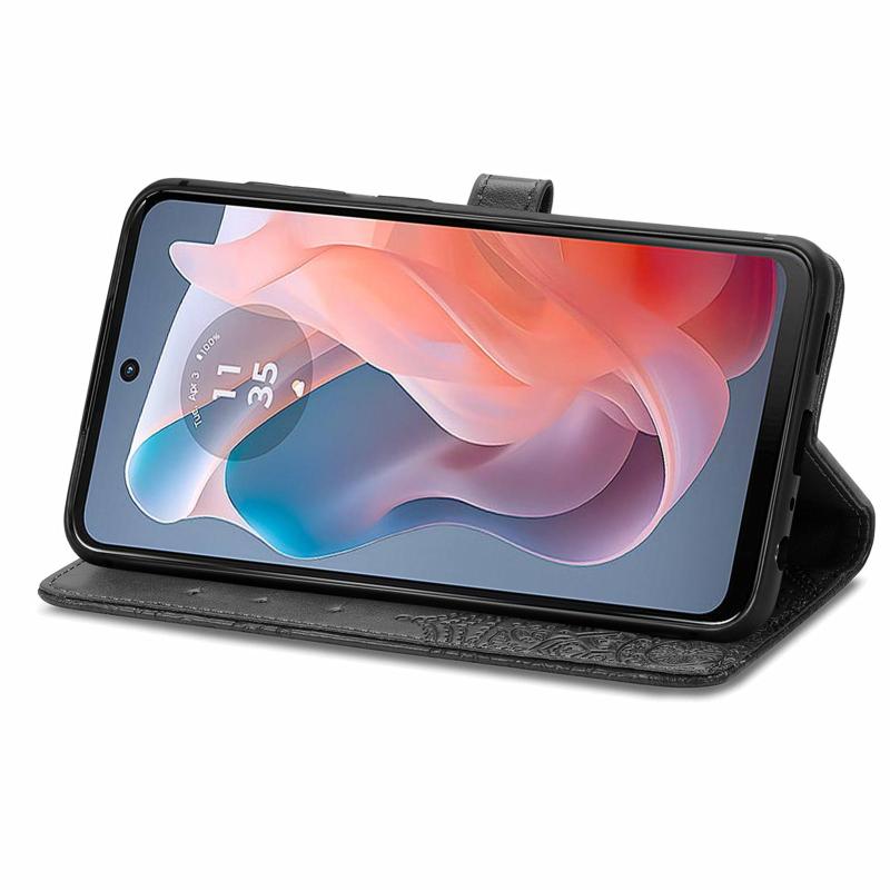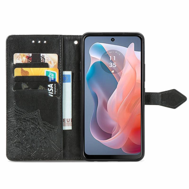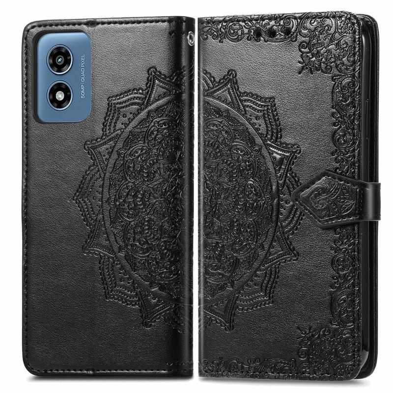 For Motorola Moto G Play 2024 Mandala Flower Embossed Leather Phone Case(Black)