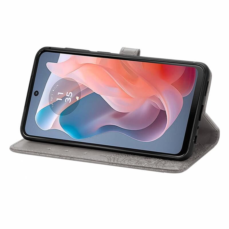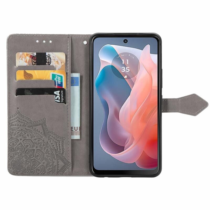 Θήκη τηλεφώνου δερμάτινη με ανάγλυφο σχέδιο μαντάλας για Motorola Moto G Play 2024 (Χρυσό ροζ)