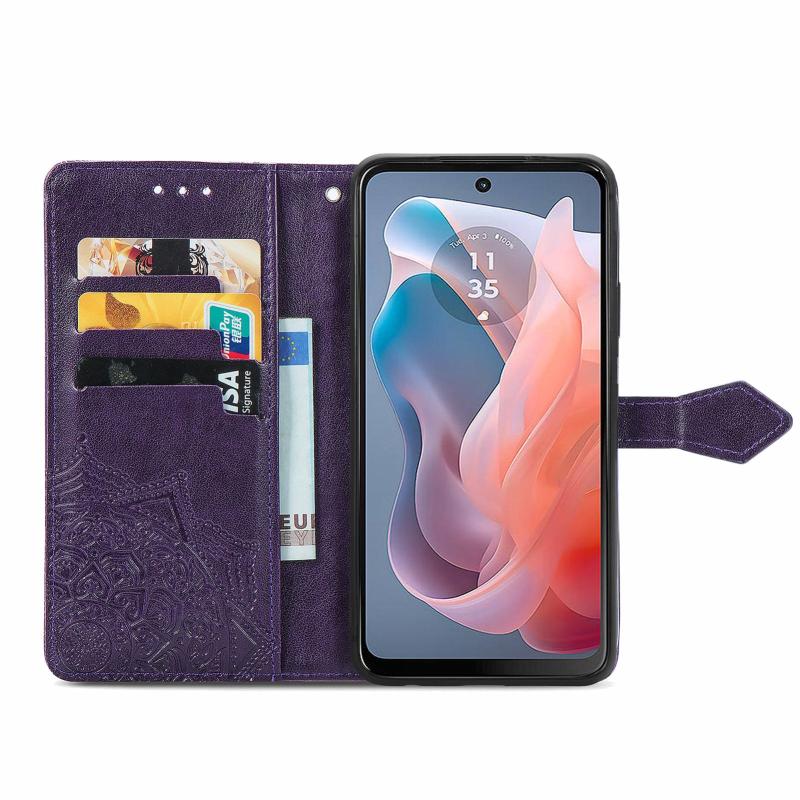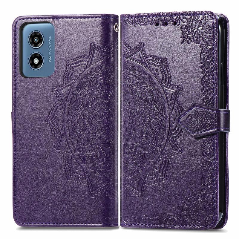 For Motorola Moto G Play 2024 Mandala Flower Embossed Leather Phone Case(Purple)