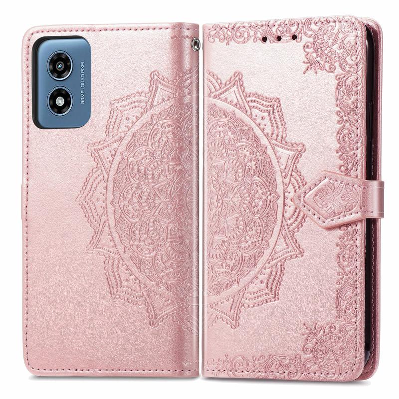 For Motorola Moto G Play 2024 Mandala Flower Embossed Leather Phone Case(Rose Gold)