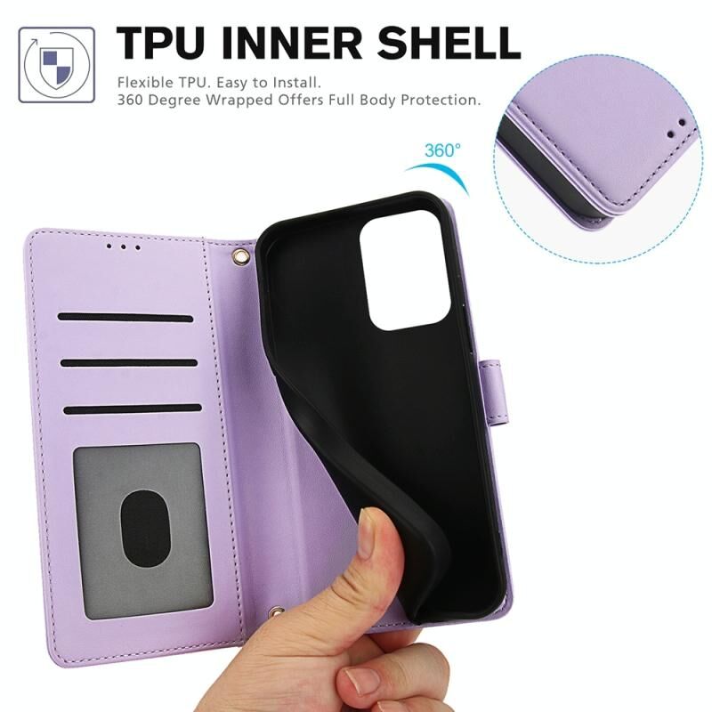 Για Motorola Moto G Play 2024 Skin Feel Pure Color Card Slots δερμάτινη θήκη τηλεφώνου με διπλό κορδόνι (μωβ)