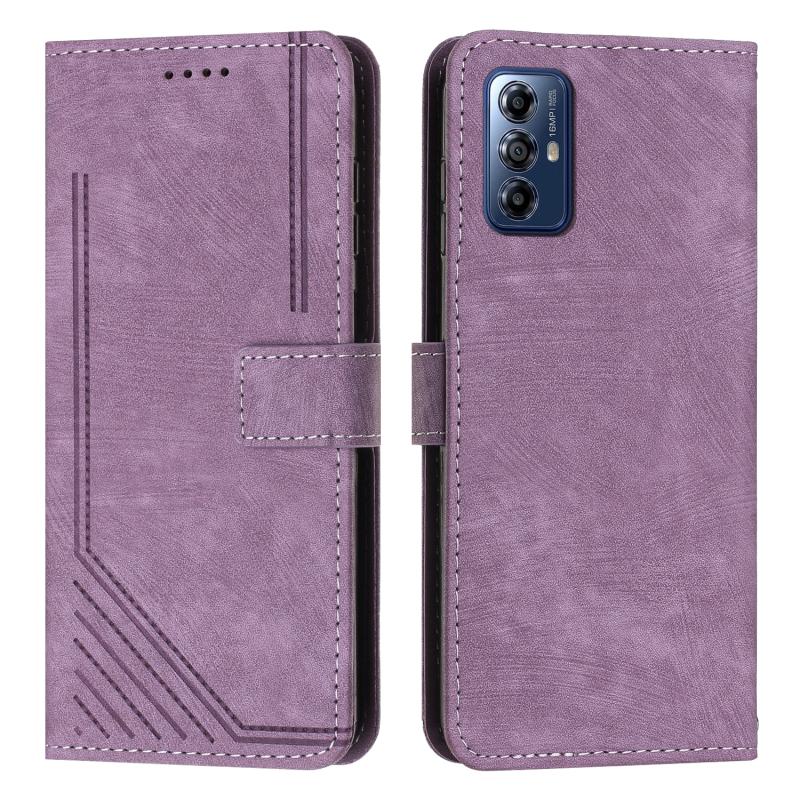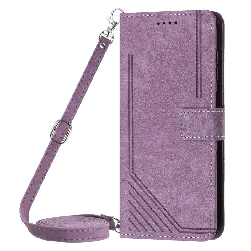 For Motorola Moto G Play 2024 Skin Feel Stripe Pattern Leather Phone Case with Lanyard(Purple)