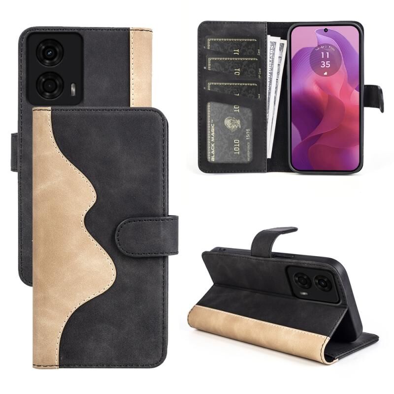 Θήκη τηλεφώνου από δέρμα με οριζόντιο άνοιγμα (ράψιμο) για Motorola Moto G Play 2024 (Μαύρο)