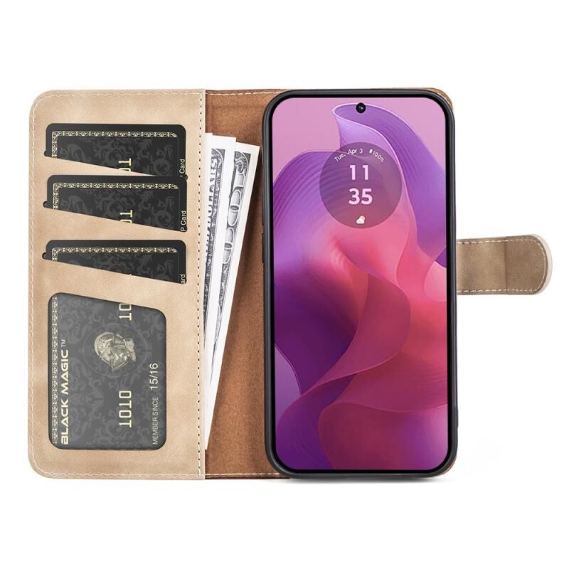 Θήκη τηλεφώνου από δέρμα με οριζόντιο άνοιγμα (ράψιμο) για Motorola Moto G Play 2024 (Μαύρο)