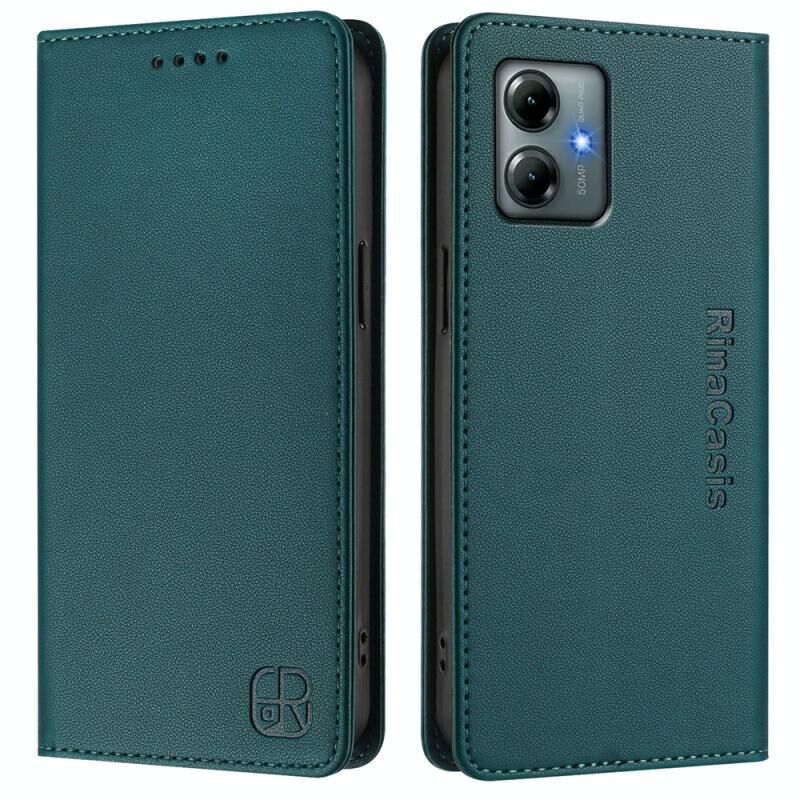 Θήκη τηλεφώνου από δέρμα με μαγνητική απορρόφηση και διπλή πτύχωση για Motorola Moto G Play 2025 / G Power 2025 RC01 (Πράσινο του γρασιδιού)
