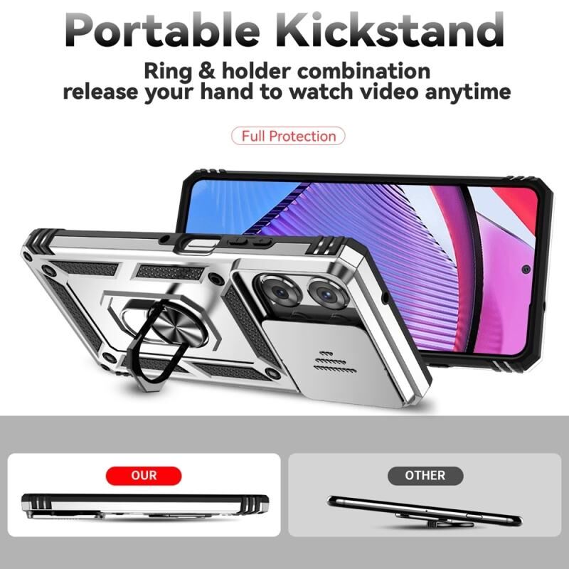 Για Motorola Moto G Play 2025 / G Power 2025 Συρόμενη θήκη τηλεφώνου με κάλυμμα κάμερας (ασημί)