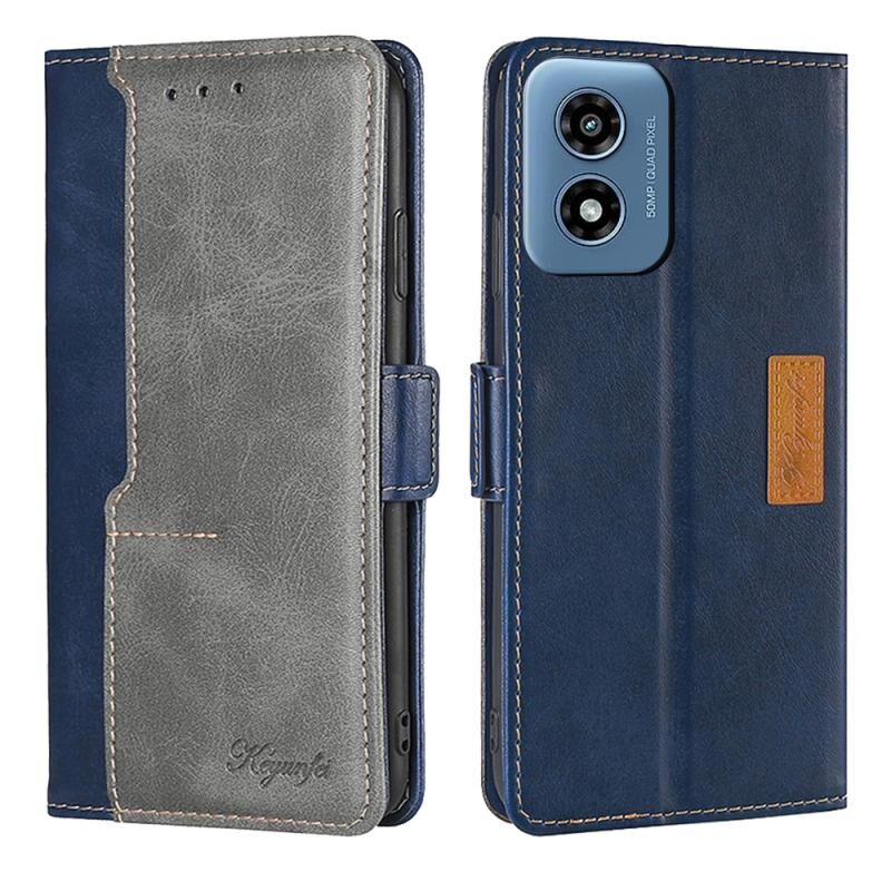 Για Motorola Moto G Play 4G 2024 Αντίθετο χρώμα πλευρά πόρπη δερμάτινη θήκη τηλεφώνου (μπλε + γκρι)