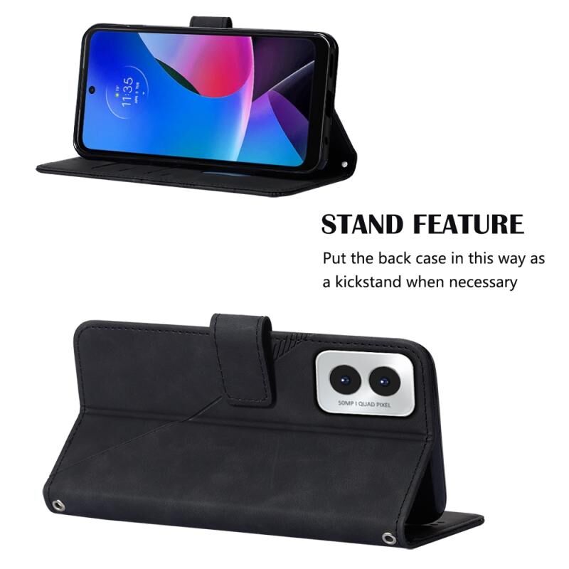 Για Motorola Moto G Play 4G 2024 Crossbody 3D ανάγλυφο Flip δερμάτινη θήκη τηλεφώνου (Μαύρο)