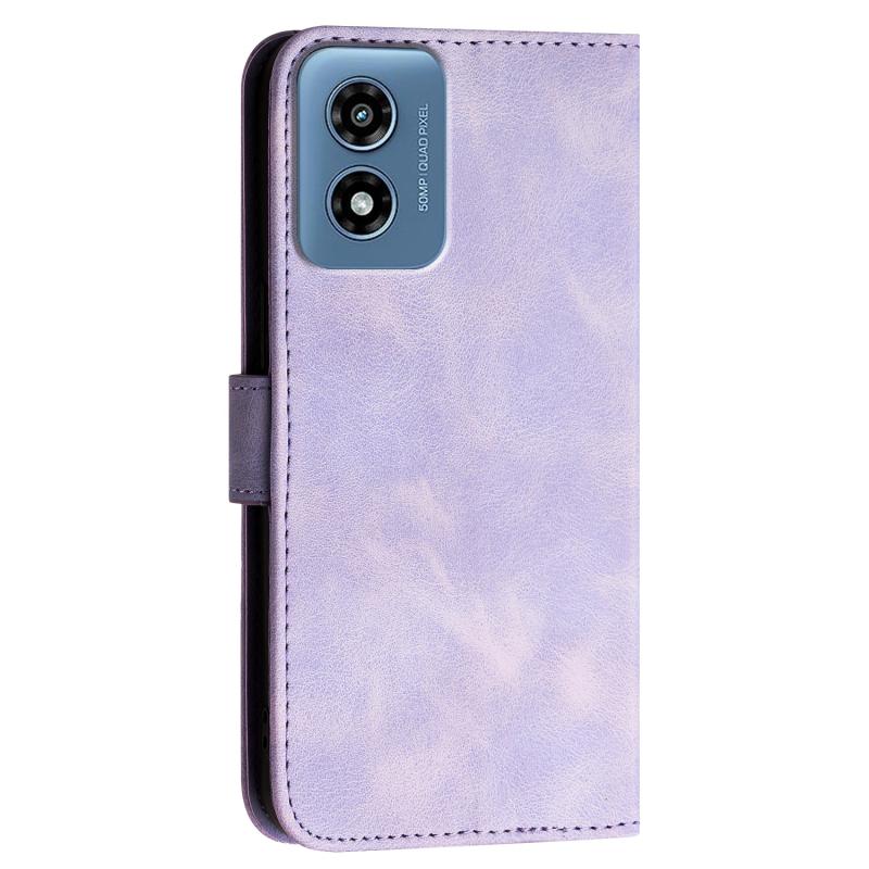For Motorola Moto G Play 4G 2024 Grid Butterfly Embossed Pattern Leather Phone Case with Lanyard(Light Purple)