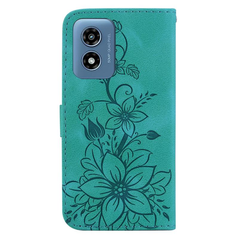 For Motorola Moto G Play 4G 2024 Lily Embossed Leather Phone Case(Green)