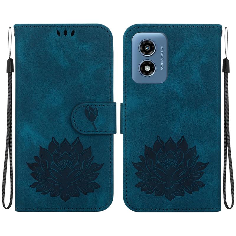 For Motorola Moto G Play 4G 2024 Lotus Embossed Leather Phone Case(Dark Blue)