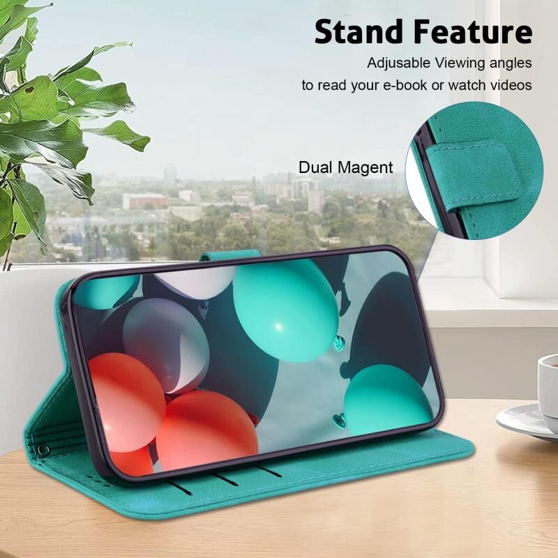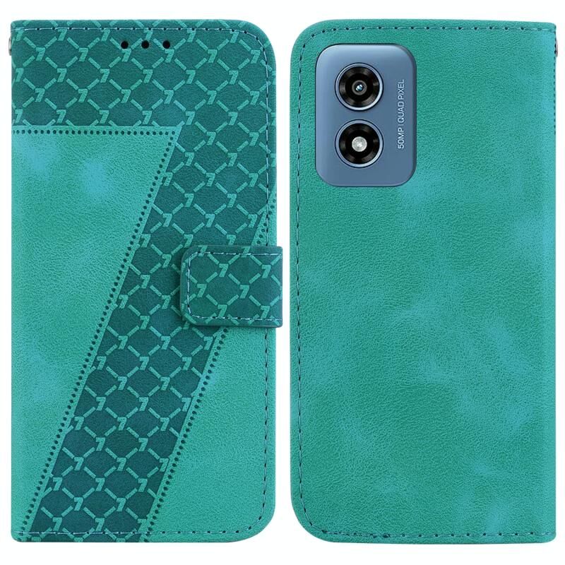 Θήκη τηλεφώνου από δέρμα με ανάγλυφο σχέδιο σε σχήμα επτά για Motorola Moto G Play 4G 2024 (πράσινο)