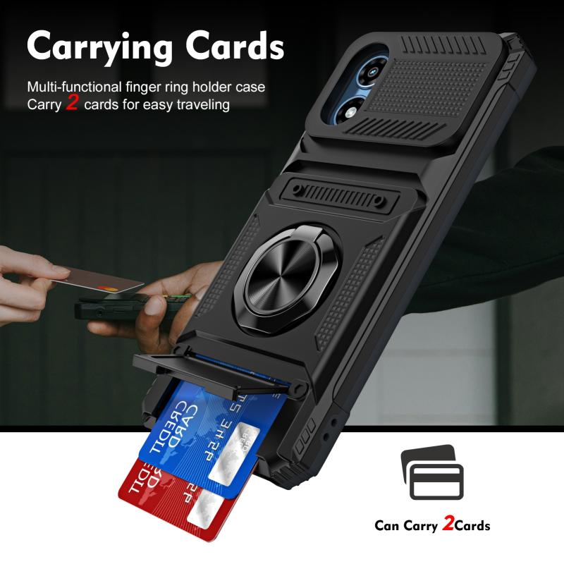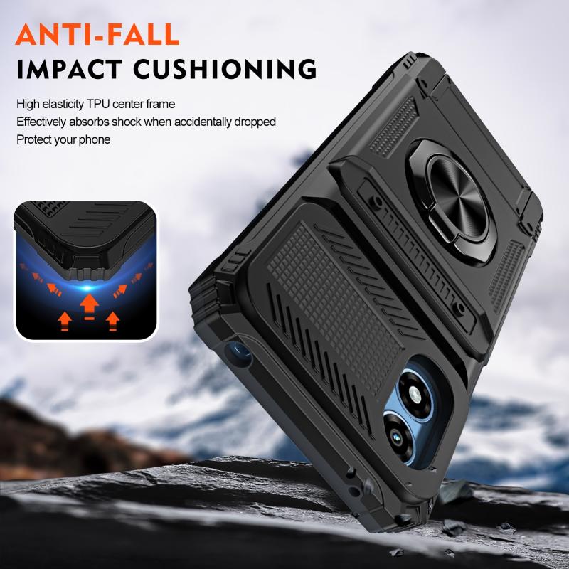 For Motorola Moto G Play 4G 2024 TPU+PC Shockproof Card Slot Phone Case with Metal Ring Holder(Black)