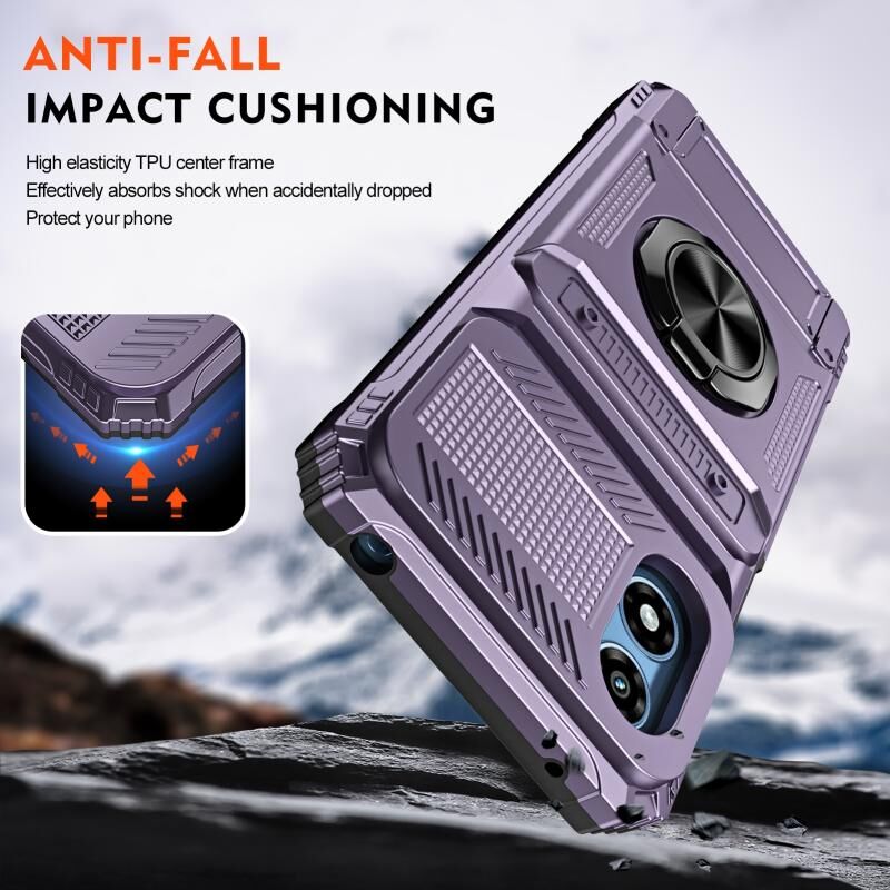 For Motorola Moto G Play 4G 2024 TPU+PC Shockproof Card Slot Phone Case with Metal Ring Holder(Purple)