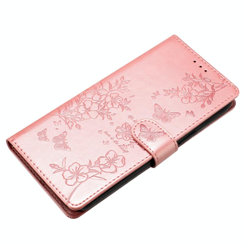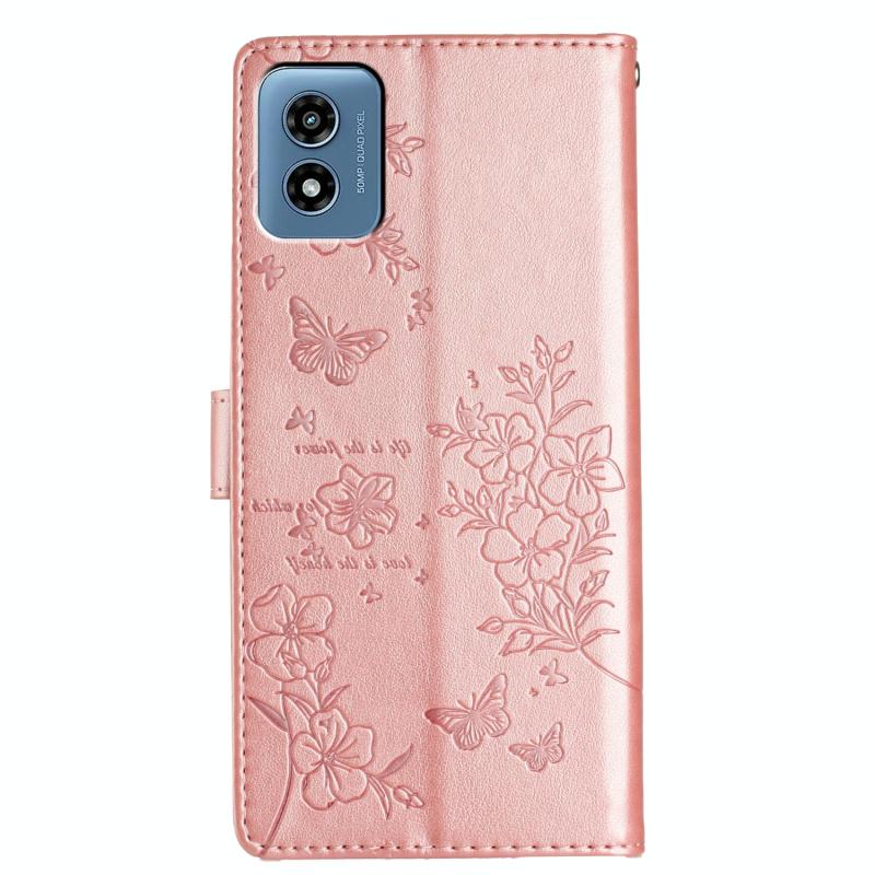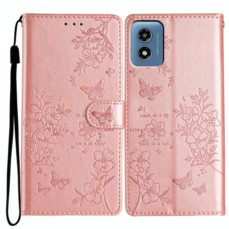 For Motorola Moto G Play 5G 2024 Butterflies and Flowers Leather Phone Case(Rose Gold)