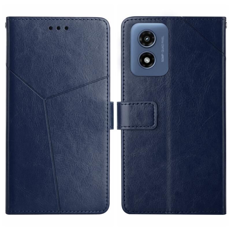 For Motorola Moto G Play 5G 2024 HT01 Y-shaped Pattern Flip Leather Phone Case(Blue)